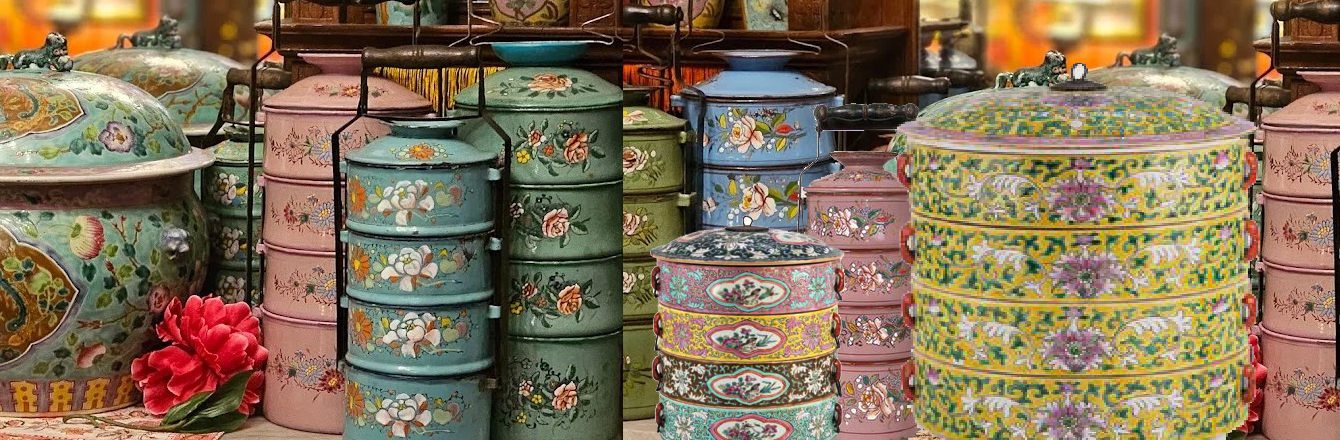 Antique poceline tiffin carriers are highly sought after by Peranakan collectors.